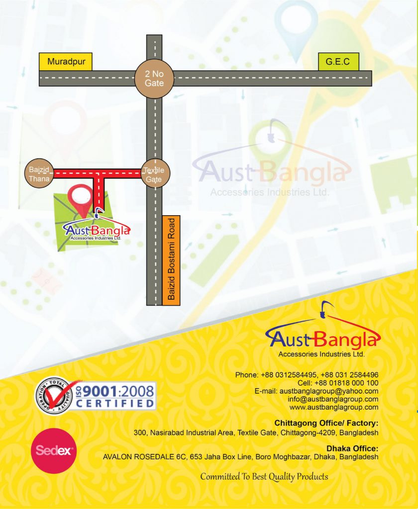 Email: austbanglagroup@yahoo.com , info@austbanglagroup.com Phone: +880312584495 , +880312584496 Cell: +8801818000100Address: 300 NASIRABAD INDUSTRIAL AREA, Chittagong 4000, Bangladesh Your Name (required) Your Email (required) Subject Your Message